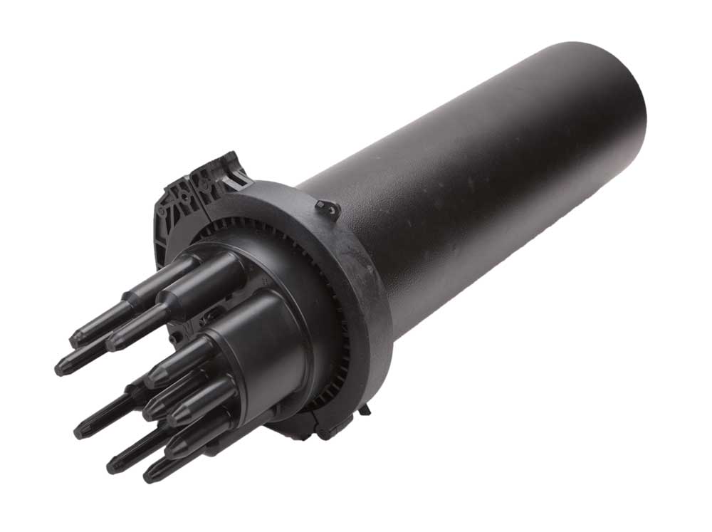 Герметизация вводов кабелей осуществляется с помощью термоусаживаемых трубок ТУТ. Круглые патрубки муфты изначально герметичны и имеют ступенчатую форму с разными диаметрами. Срезая патрубок в определенном месте можно подобрать отверстие максимально близкое к диаметру вводимого кабеля. Таким образом, исключается излишнее натяжение ТУТ после усадки при вводе относительно тонких кабелей. Все круглые патрубки муфты оснащены также индивидуальными узлами крепления ЦСЭ.
