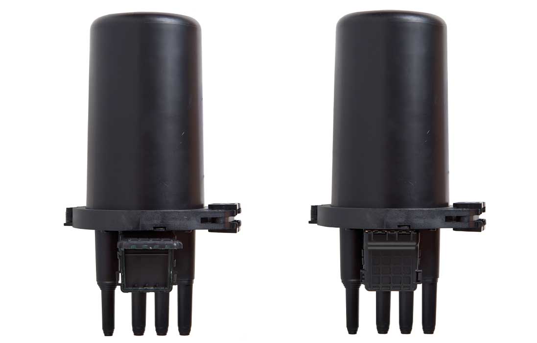 Ввод абонентских дроп-кабелей осуществляется с помощью адаптеров (гермовводов) на оголовнике, отверстия в которых позволяют вводить в муфту дроп-кабели с разъемами SC типа. Герметизация достигается с помощью эластичного геля.