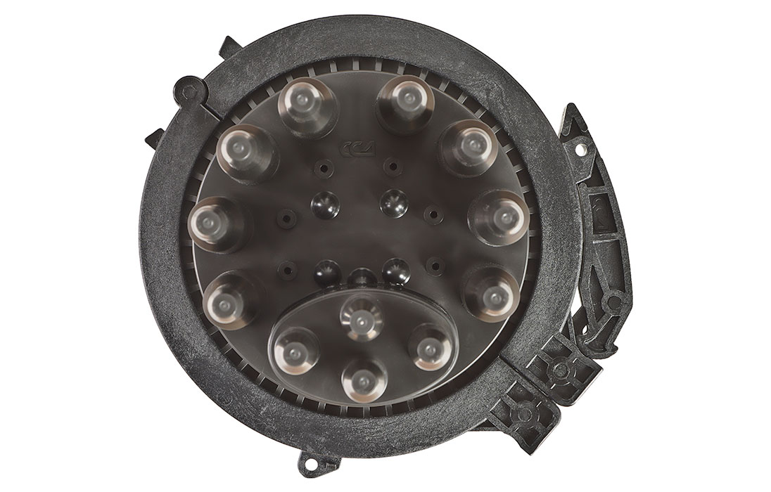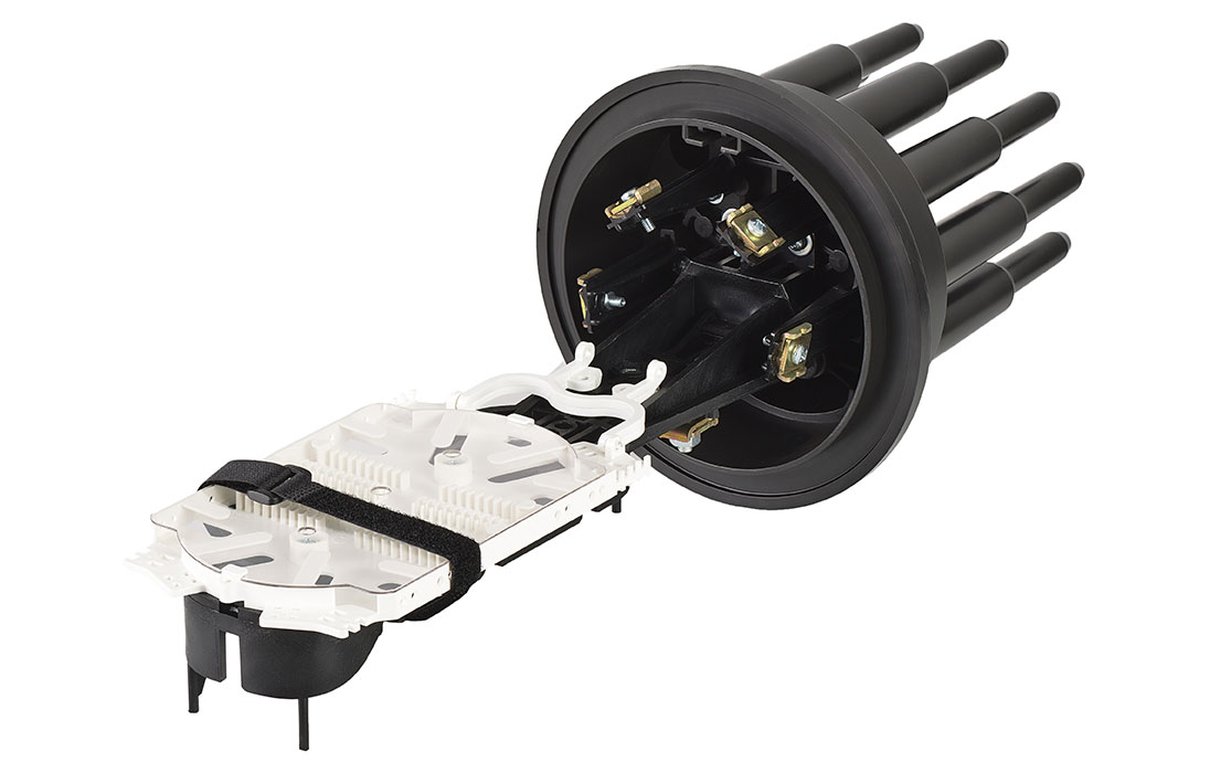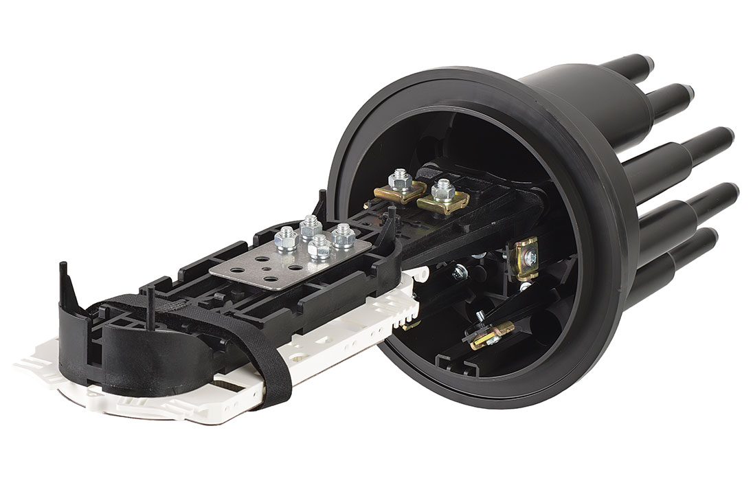 Способ герметизации вводов кабелей, осуществляется с помощью термоусаживаемых трубок ТУТ. Круглые патрубки на оголовнике муфты изначально герметичны и имеют ступенчатую форму с разными диаметрами. Срезая патрубок в определенном месте можно подобрать отверстие максимально близкое к диаметру вводимого кабеля. Таким образом, исключается излишнее натяжение ТУТ после усадки при вводе относительно тонких кабелей. Все патрубки муфты оснащены также индивидуальными узлами крепления ЦСЭ.