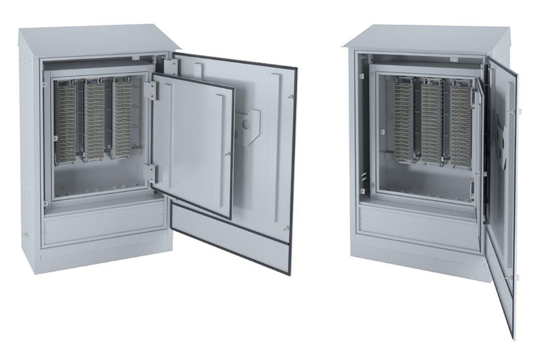 Предназначены для перехода с магистральных кабелей на распределительные кабели местных сетей. Номинальная емкость шкафа – 600 пар.