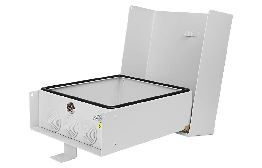 Конструкция крышки ящика исключает попадание внутрь воды даже при нарушении герметичности уплотнителей. Для предотвращения несанкционированного доступа ящик снабжен замком с универсальным секретом.