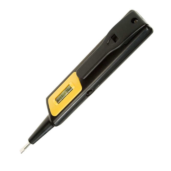 На корпусе детектора расположен яркий светодиод, который можно использоваться в качестве фонарика. Прибор имеет светодиодную индикацию и переключатель уровня чувствительности. Питание производится от двух батарей 1.5В (поставляются в комплекте). Корпус детектора изготовлен из ударопрочной пластмассы.