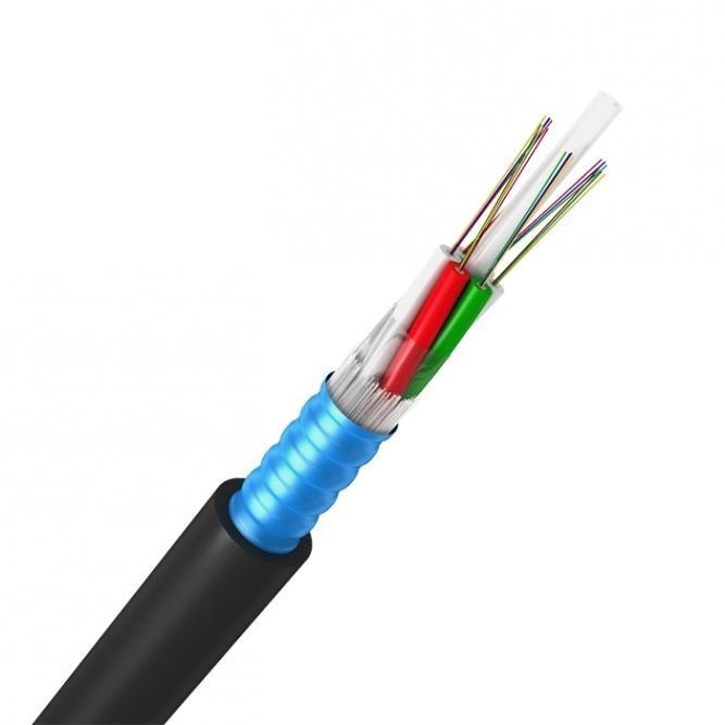 На скрученный сердечник наложен бронепокров из стальной гофрированной ленты, поверх бронепокрова наложена наружная оболочка из полиэтилена.