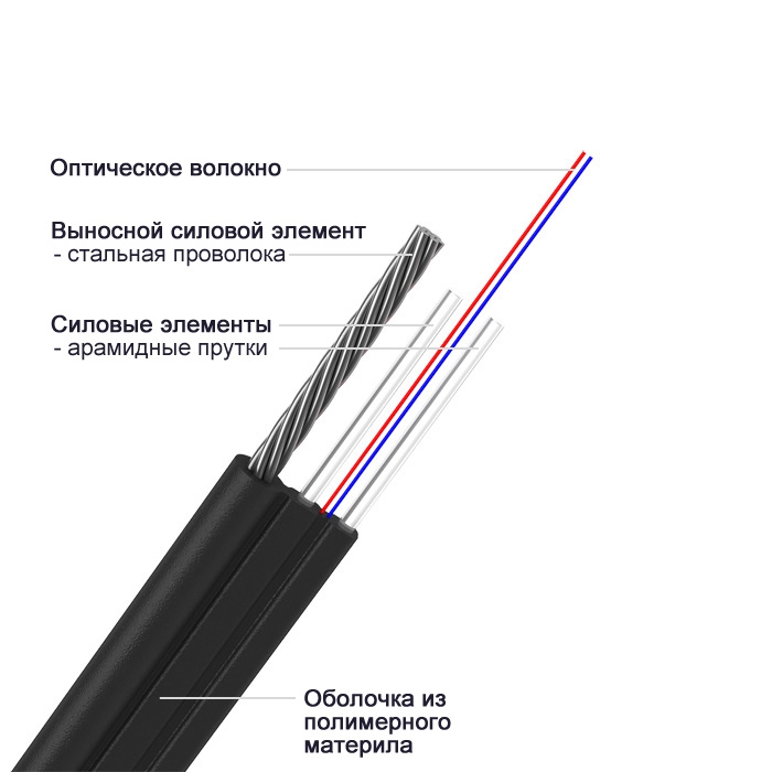 - Кабель усиленной прочности, тонкий, гибкий, для подвеса на улице, прокладки внутри зданий, идеален как абонентский кабель.