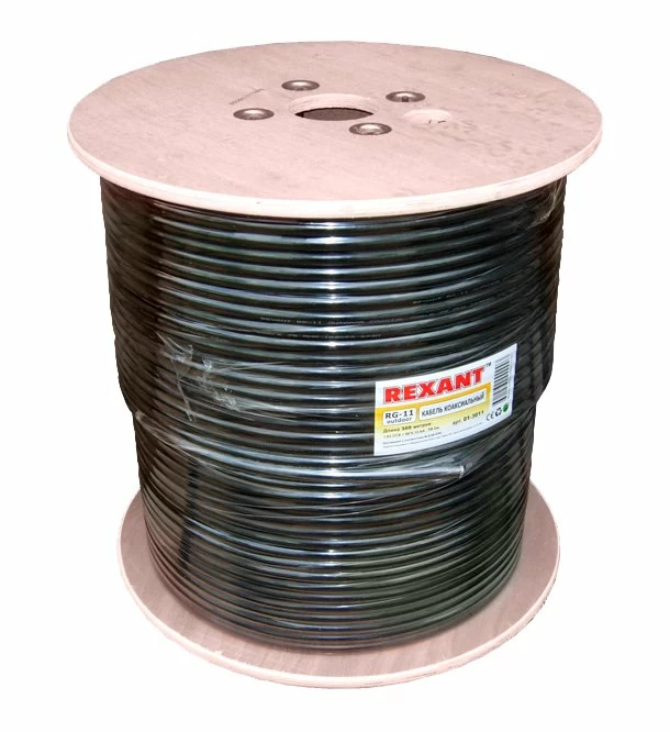 Магистральный кабель RG-11U 75 Ом черный REXANT является важным элементом видео и телевизионных систем. Он применяется в составе распределительных телевизионных сетей при прокладке внутри зданий. Данный кабель используется для передачи высокочастотных аудио и видео сигналов. Кабель RG-11U 75 Ом черный REXANT состоит из центрального омедненного проводника, изолированного полиэтиленовым диэлектриком, и экрана, наложенного на сердечник и имеющего дополнительную оплетку из алюминиевых проводов, которая обеспечивает электрическую непрерывность экрана. Это двойное экранирование кабеля надежно защищает передаваемый сигнал от внешних помех. Диаметр кабеля RG-11U - 11,2 мм. Внешняя сплошная оболочка изготовлена из ПВХ и имеет черный цвет. Номинальное волновое сопротивление кабеля - 75 Ом. Кабель применяется для передачи сигналов с диапазоном частот 5 – 1000 МГц.