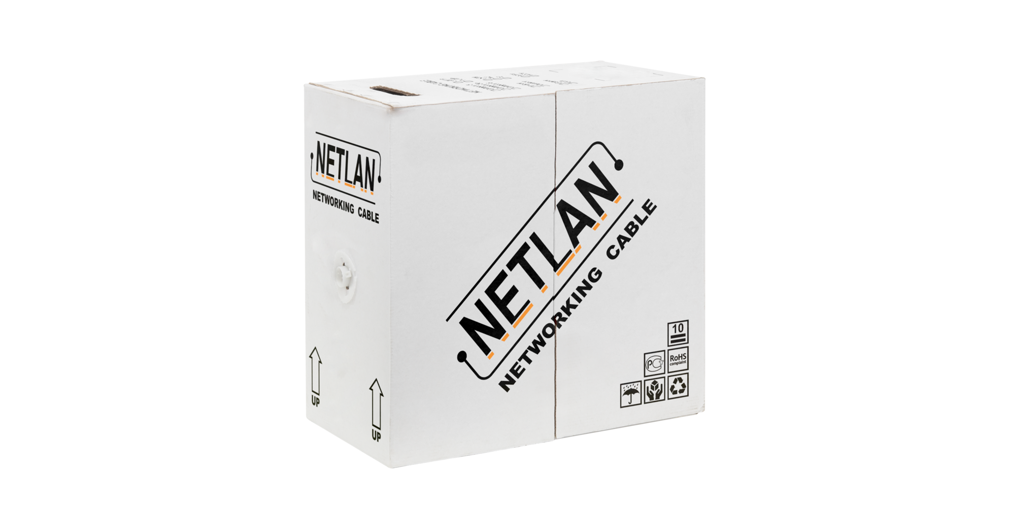 Кабель NETLAN U/UTP 4 пары, Кат.6 (Класс E), 250МГц, одножильный, BC (чистая медь), внутренний, PVC нг(B), серый, 305м