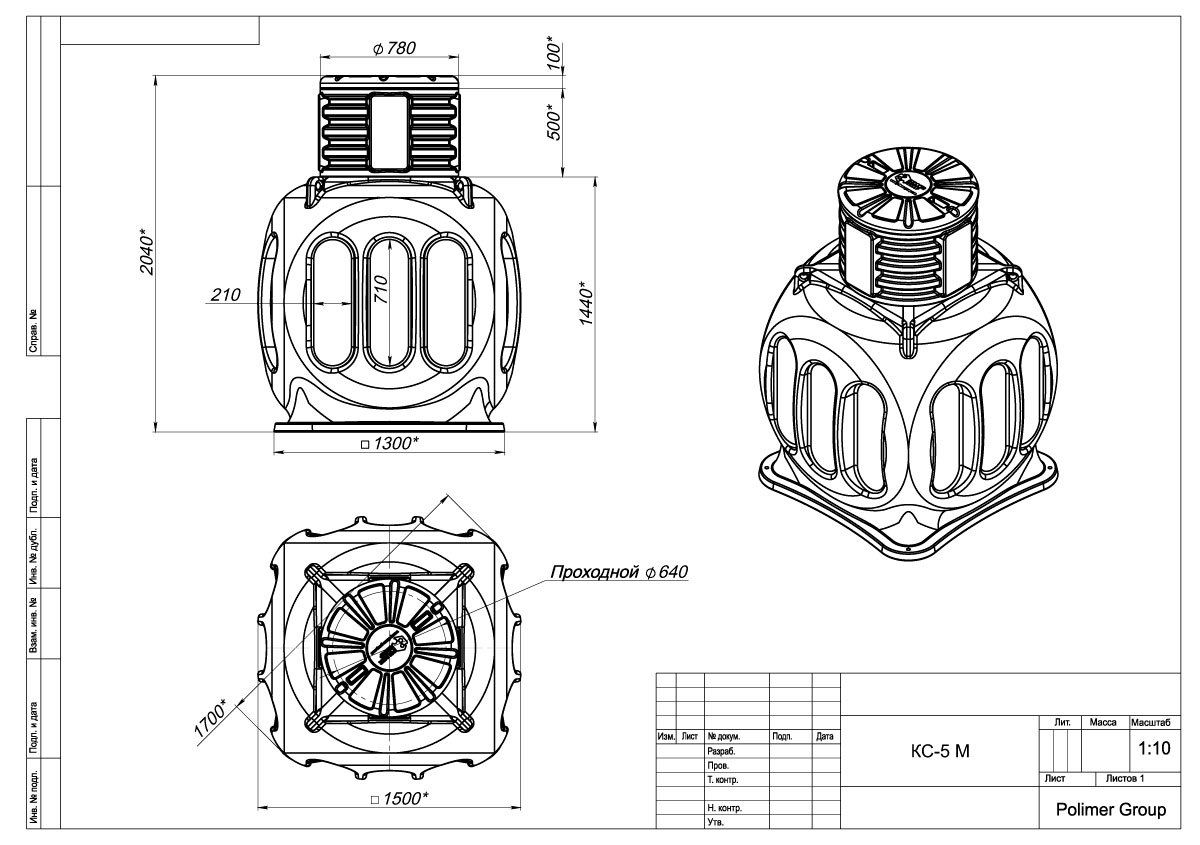 Колодец КС-5 с горловиной D780 мм и крышкой D780