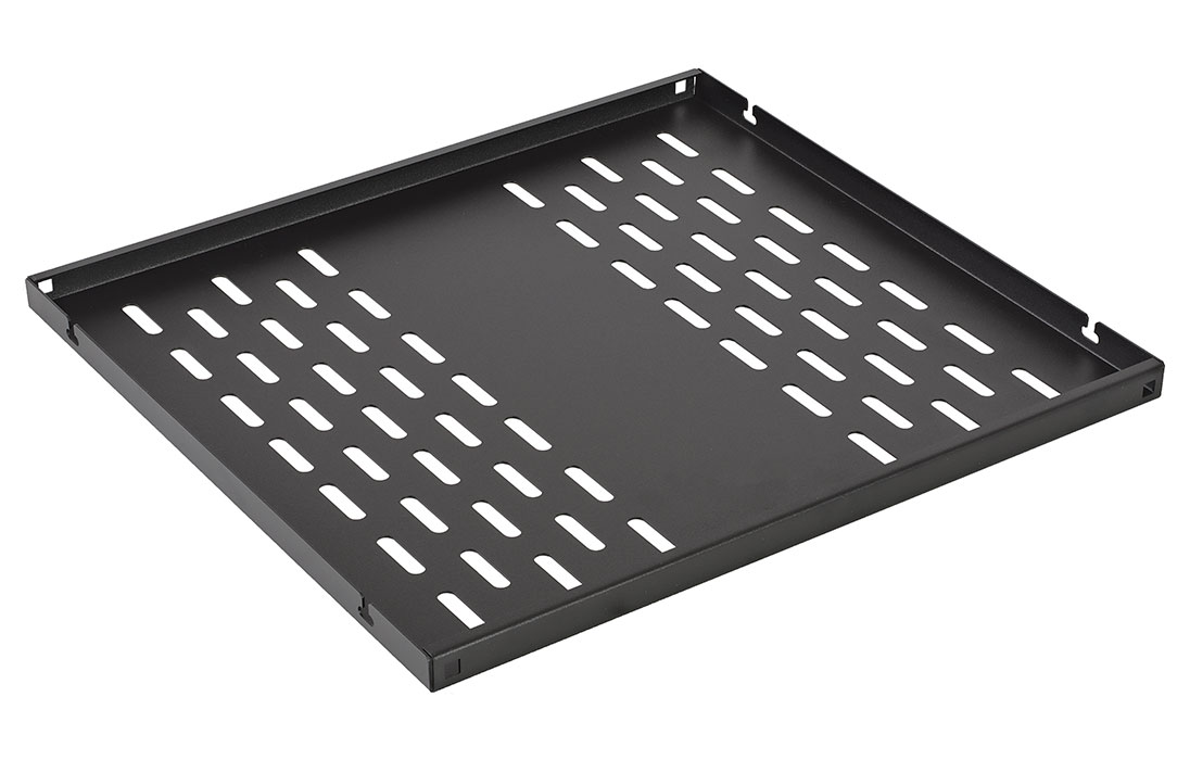 Полка стационарная предназначена для размещения нестандартного оборудования. Имеют четыре точки фиксации к вертикальным направляющим шкафов телекоммуникационных, климатических и открытых стоек. Для охлаждения оборудования полки имеют перфорацию.