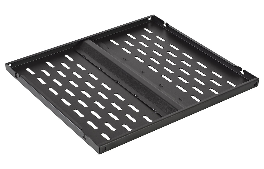 Полка стационарная предназначена для размещения нестандартного оборудования. Имеют четыре точки фиксации к вертикальным направляющим шкафов телекоммуникационных, климатических и открытых стоек. Для охлаждения оборудования полки имеют перфорацию.