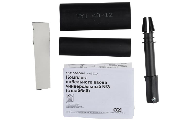 Используется для ввода самонесущих и небронированных оптоволоконных кабелей в круглые патрубки, а также кабелей без необходимости крепления силовых элементов. Обеспечивает крепление центрального силового элемента и синтетических нитей.