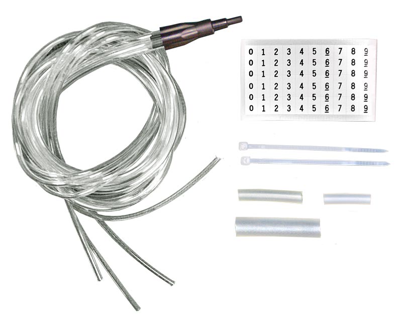 Комплект состоит из адаптера, набора переходных трубок и трубок для разветвления ОВ. Для маркировки трубок в комплект адаптера включены маркеры.