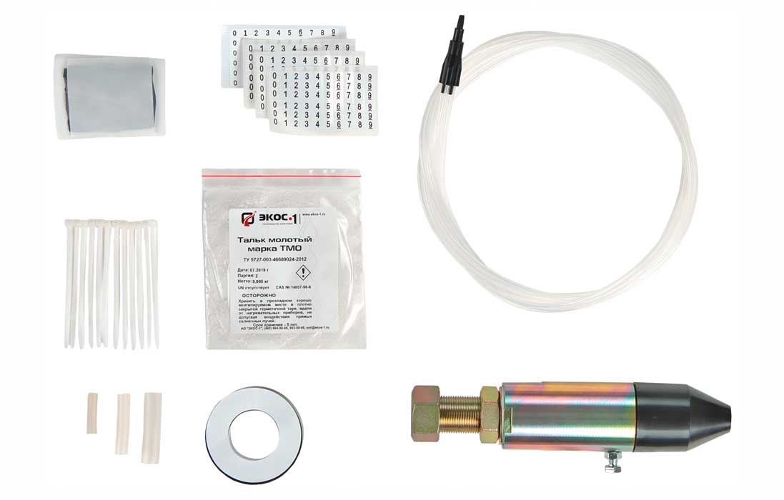 Каждый комплект для ввода грозотроса содержит узел ввода, уплотнительную резиновую втулку соответствующей конструкции и адаптеры оптического волокна АОВ-4 в количестве, равном количеству модулей в грозотросе.