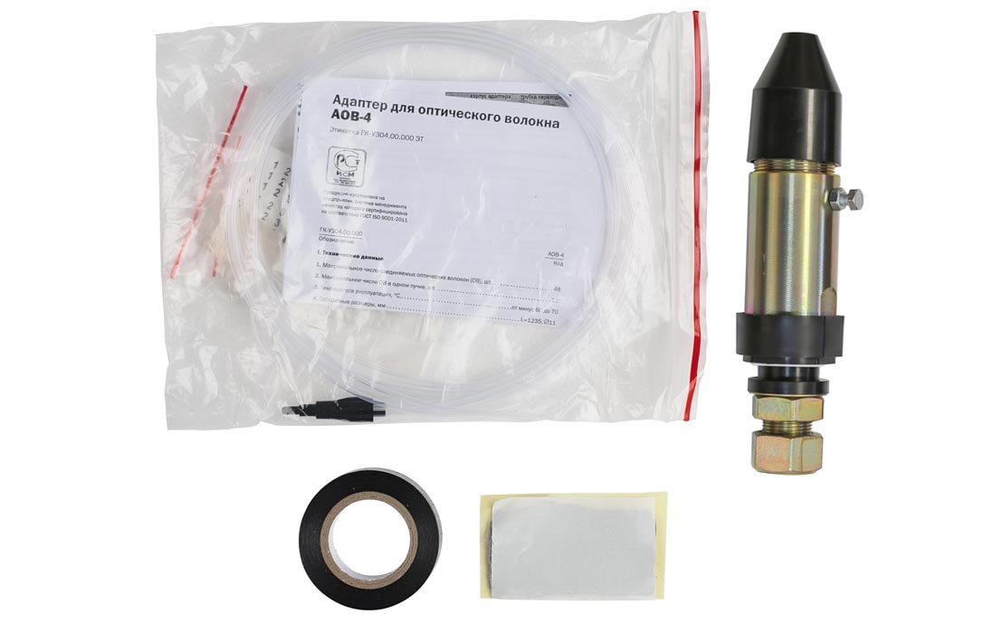 Каждый комплект для ввода грозотроса содержит узел ввода, уплотнительную резиновую втулку соответствующей конструкции и адаптеры оптического волокна АОВ-4 в количестве, равном количеству модулей в грозотросе.