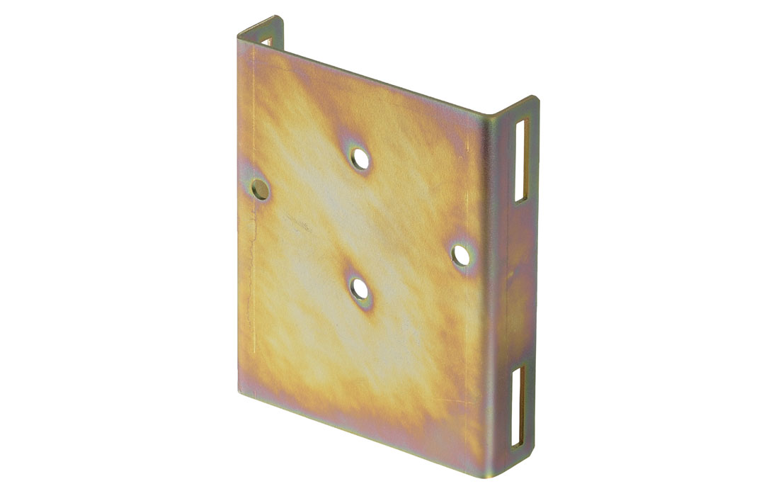 Кронштейн крепится к корпусу муфты с задней стороны. В кронштейне сделаны отверстия для крепления к столбовым опорам с помощью металлической монтажной ленты.