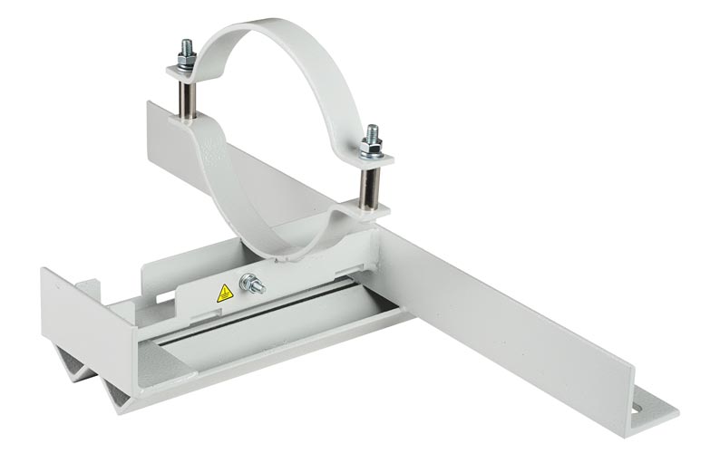 Открытый кронштейн предназначен для подвески универсальных и внутризоновых оптических муфт без защитного кожуха на столбовой опоре. Крепление к опоре осуществляется с помощью хомута крепления или ленты крепления.