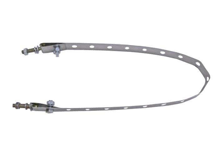 Лента с большим количеством круглых отверстий изготовлена из нержавеющей стали. При монтаже лента огибается вокруг опоры. Требуемая длина ленты регулируется путем загиба излишков по краям ленты. В торцевые отверстия, образовавшихся в результате загибов петель, вставляются резьбовые тяги, после чего петли фиксируются болтами. Тяги устанавливаются в крепёжные отверстия устройств подвески и с помощью затягивания гаек производится натяжение ленты.