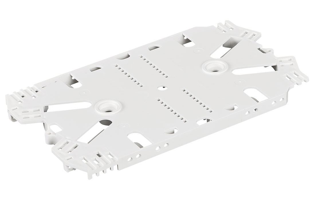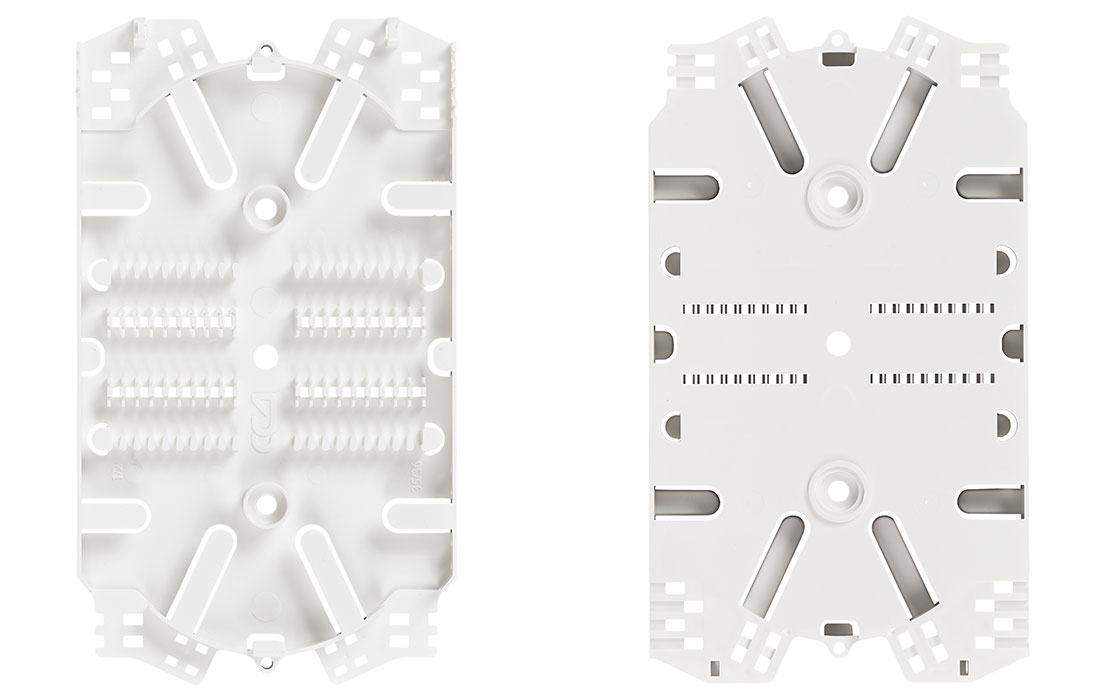 Конструкция кассеты позволяет заводить модули с ОВ с любого из четырёх углов и осуществлять изменение направления укладки запаса волокон. Свободная укладка дает возможность трехкратной переделки сварки волокна без уменьшения числа витков запаса.
