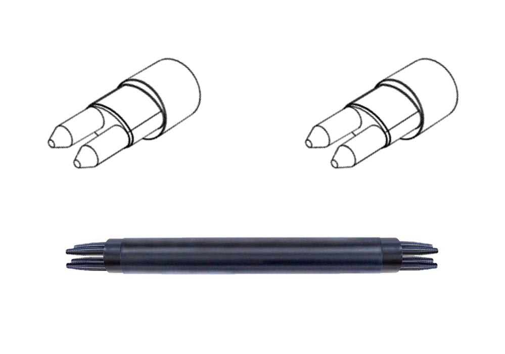 В муфте предусмотрено два овальных ввода. Таким образом, муфта может одновременно использоваться для ввода транзитной петли кабеля и ввода двух кабелей диаметром до 25 мм. В обоих случаях для герметизации необходимо дополнительно приобрести (Ввод №6).