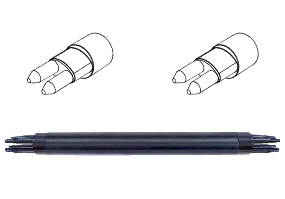 В муфте предусмотрено два овальных ввода. Таким образом, муфта может одновременно использоваться для ввода транзитной петли кабеля и ввода двух кабелей диаметром до 25 мм. В обоих случаях для герметизации необходимо дополнительно приобрести (Ввод №6).