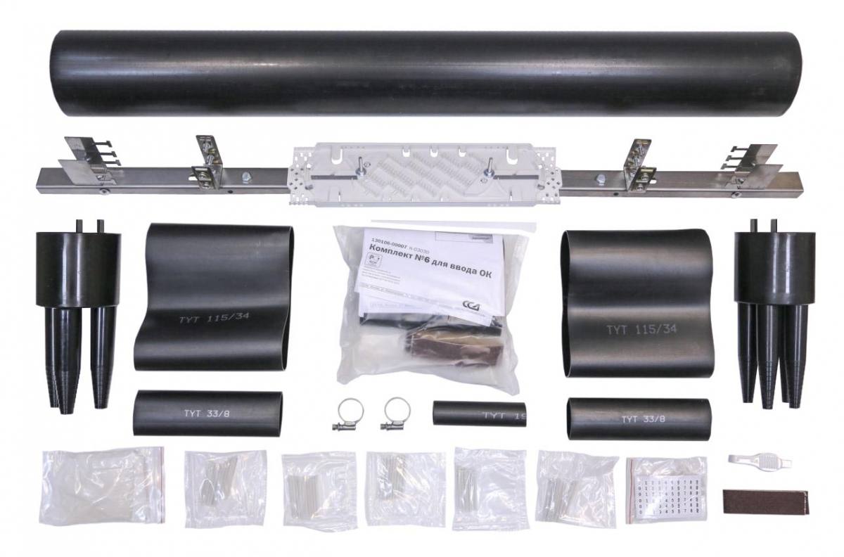 - муфты поставляются с одной кассетой К4845 и комплектами трубок ТУТ для ввода двух кабелей;