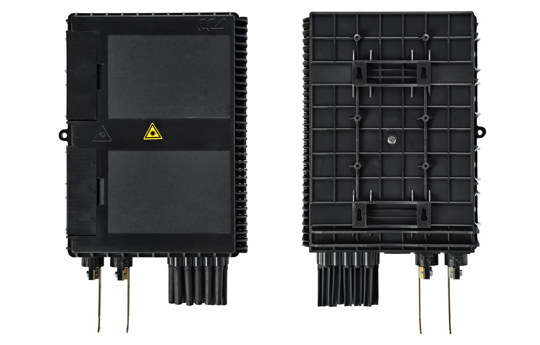 Выполнена из пластмассы и имеет пыле-брызгозащищенную тупиковую конструкцию (ввод ОК и вывод ШОС производится с одной стороны).