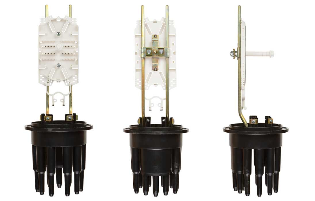 Предназначена для монтажа подвесных самонесущих ОК и оптических кабелей с вынесенным силовым элементом типа «8», а также городских кабелей любых конструкций, в том числе и с броней из стальной гофрированной ленты. В муфте предусмотрен овальный ввод для транзитной петли оптических модулей без разрезания. Выкладка петли модулей осуществляется на лотке с противоположной стороны от кассет.