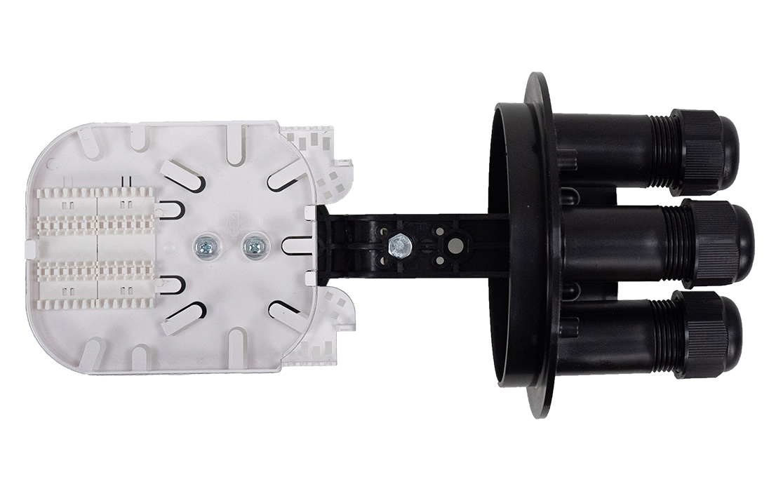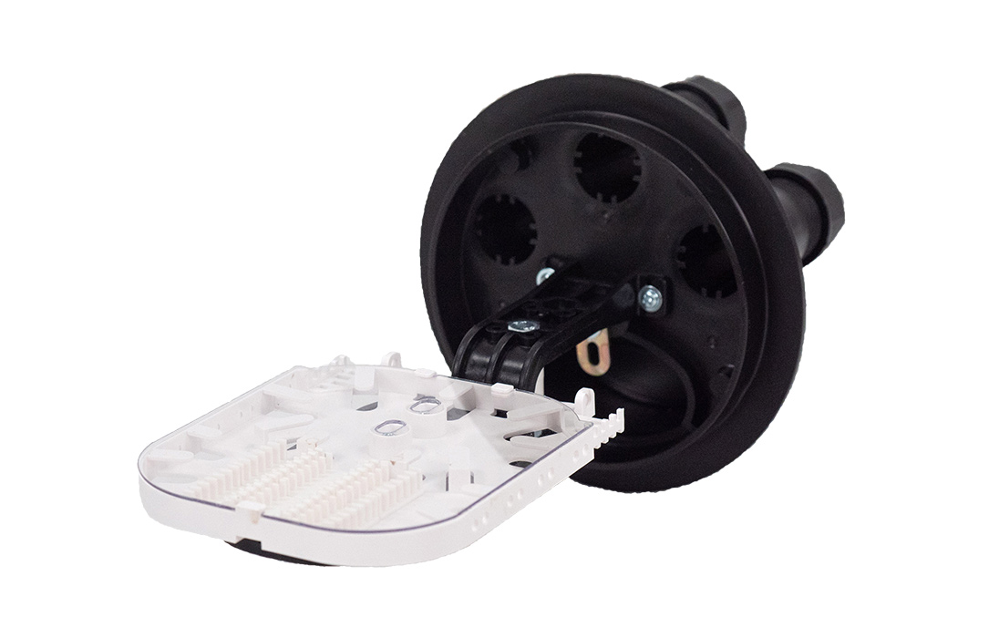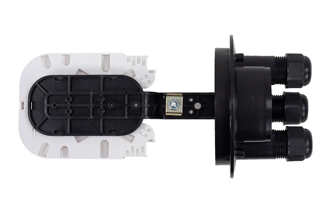 Ввод кабеля, крепление и герметизация осуществляется с помощью резьбовых фитингов, отлитых непосредственно на оголовнике муфты. Муфта имеет три круглых патрубка с фитингами и один овальный, герметизация вводимых в который кабелей осуществляется также механическим способом. Используя специальные комплекты для ввода в овальный патрубок можно ввести как два отдельных кабеля так и транзитный. Заглушка овального ввода выламывается при помощи молотка.