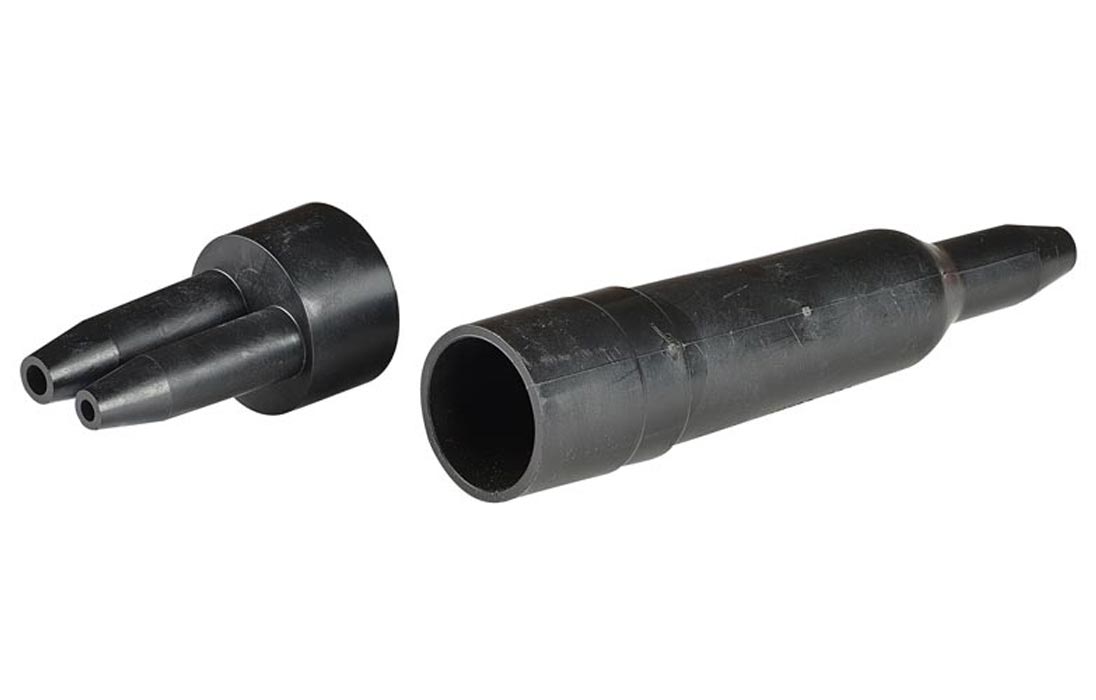 Предназначена для защиты сростка разветвляемых кабелей с наружным диаметром от 11 до 21 мм с оболочками из полиэтилена, в том числе и с гидрофобным заполнением. Оголовник с двумя патрубками различных диаметров позволяет ввести кабели от 7 до 19 мм. Сросток 156 мм можно выполнить как с индивидуальными, так и с многожильными соединителями.