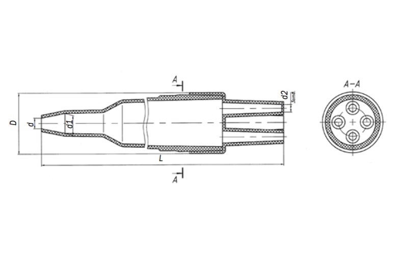Разветвительные муфты МРП имеют оголовники с количеством патрубков от 2 до 5. Внутренние диаметры патрубков позволяют вводить в них кабели ответвления в различных сочетаниях емкостей. Возможно различное сочетание, однако суммарная емкость кабеля ответвления не должна превышать максимально возможную для данного типоразмера ёмкость основного кабеля.