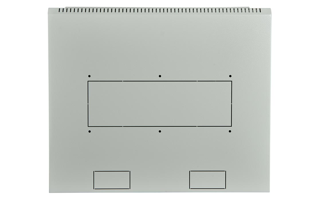 Имеет полностью разборную конструкцию и состоит из шести основных частей: крыша, дно, две боковые стенки с вертикальными направляющими, дверь, задняя стенка* и две передние направляющие. За счет элементов крепления каркас шкафа имеет повышенную жесткость. Комплектация шкафа возможна с несколькими исполнениями двери-металлической, перфорированной и с каленым ударопрочным, тонированным стеклом. Предусмотрены два кабельных ввода в верхней и нижней частях шкафа, размер – 100х50 мм. В основание или крышу шкафа возможна установка вентиляторного модуля. Для установки модуля демонтируется заглушка, и модуль фиксируется шестью винтами. Вертикальные направляющие регулируются по глубине. Система заземления шкафа входит в стандартную комплектацию.