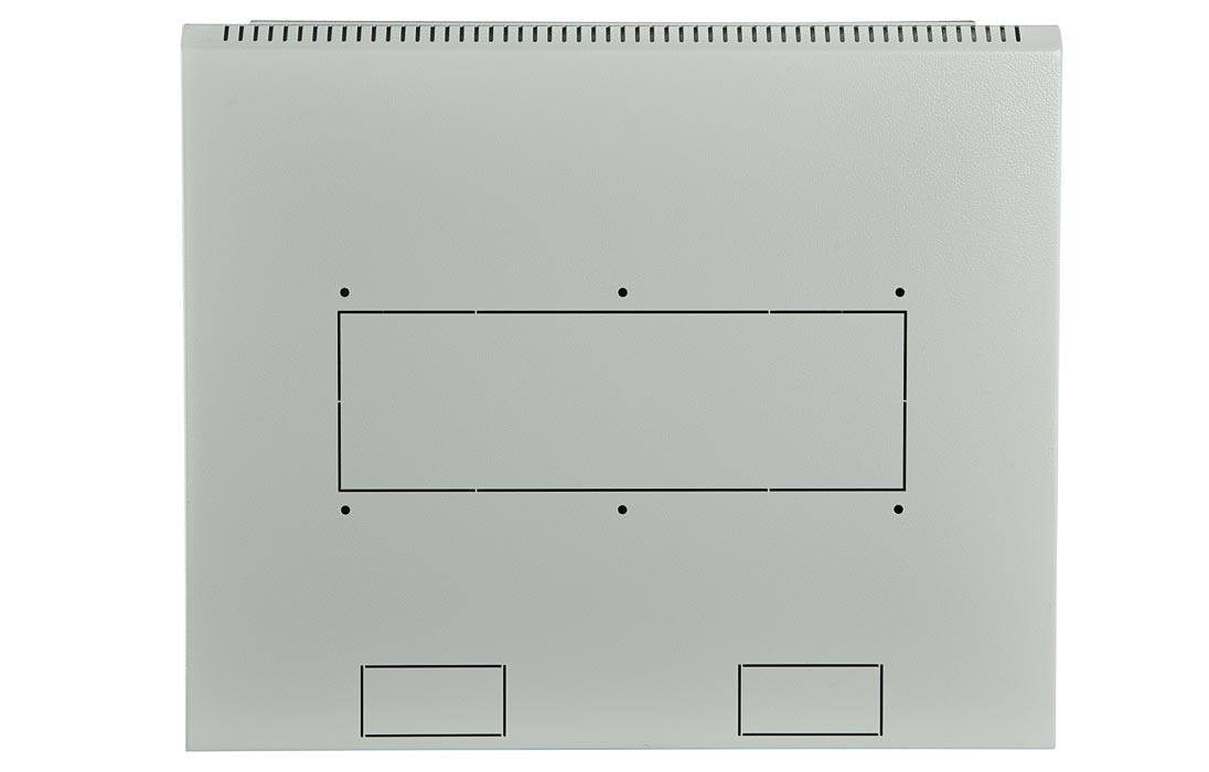 Имеет полностью разборную конструкцию и состоит из шести основных частей: крыша, дно, две боковые стенки с вертикальными направляющими, дверь, задняя стенка* и две передние направляющие. За счет элементов крепления каркас шкафа имеет повышенную жесткость. Комплектация шкафа возможна с несколькими исполнениями двери-металлической, перфорированной и с каленым ударопрочным, тонированным стеклом. Предусмотрены два кабельных ввода в верхней и нижней частях шкафа, размер – 100х50 мм. В основание или крышу шкафа возможна установка вентиляторного модуля. Для установки модуля демонтируется заглушка, и модуль фиксируется шестью винтами. Вертикальные направляющие регулируются по глубине. Система заземления шкафа входит в стандартную комплектацию.