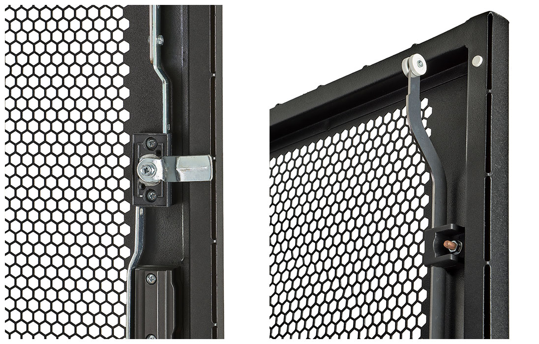 За счет элементов крепления каркас шкафа имеет повышенную жесткость. Распределенная вертикальная нагрузка до 600 кг. Стандартно шкаф комплектуется: передней дверью, боковыми и задней стенками с замками.