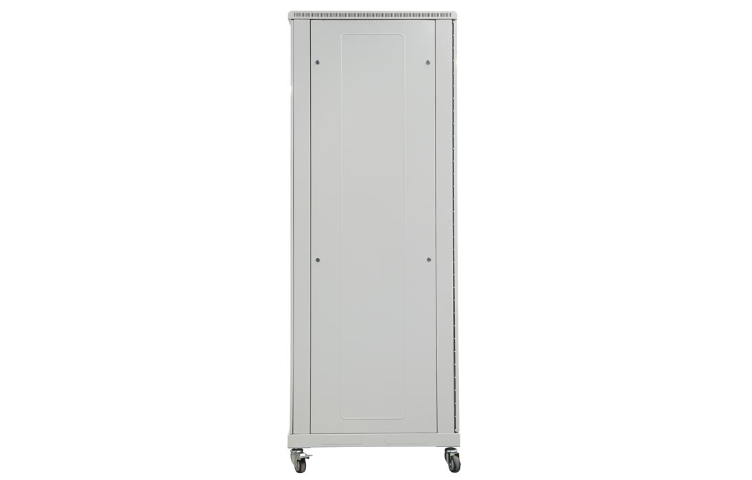 За счет элементов крепления каркас шкафа имеет повышенную жесткость. Распределенная вертикальная нагрузка до 600 кг. Стандартно шкаф комплектуется: передней дверью, боковыми и задней стенками с замками.