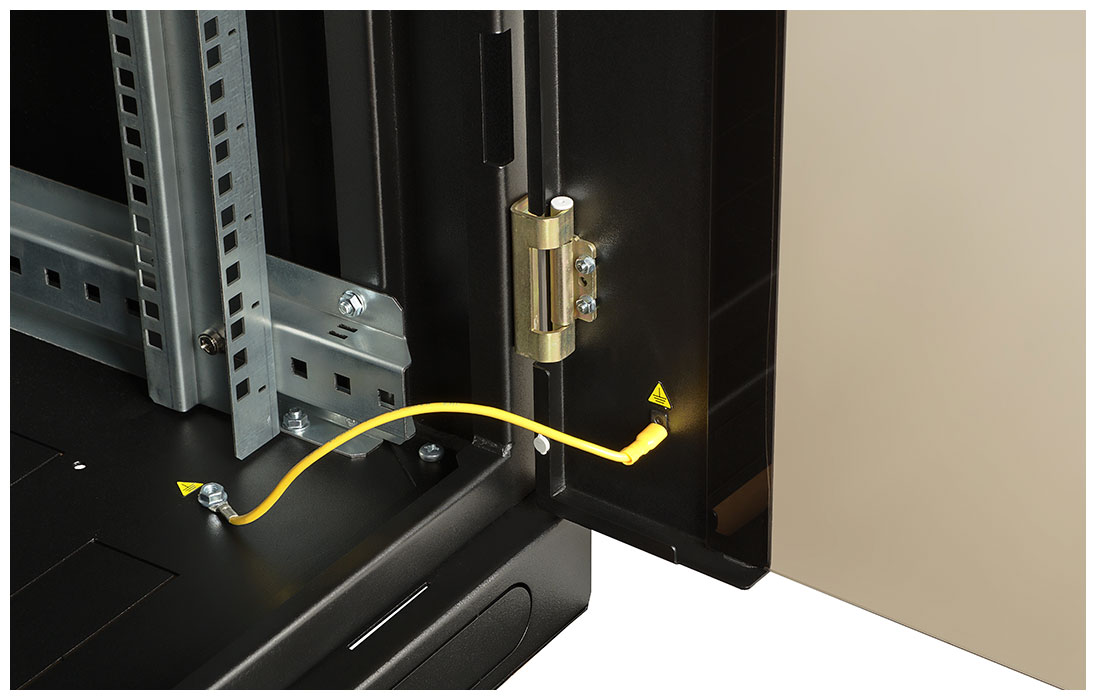 Вертикальные направляющие регулируются по глубине. Система заземления шкафа входит в стандартную комплектацию.