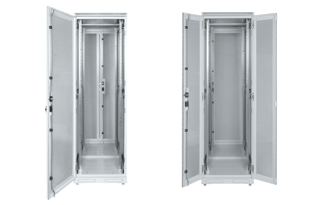 За счет элементов крепления каркас шкафа имеет повышенную жесткость. Распределенная вертикальная нагрузка до 1000 кг. Стандартно шкаф комплектуется: передней и задней дверями, боковыми стенками с замками.