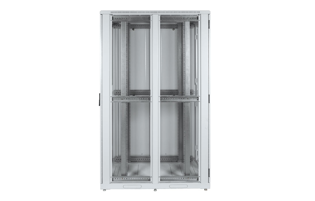 За счет элементов крепления каркас шкафа имеет повышенную жесткость. Распределенная вертикальная нагрузка до 1000 кг. Стандартно шкаф комплектуется: передней и задней дверями, боковыми стенками с замками.