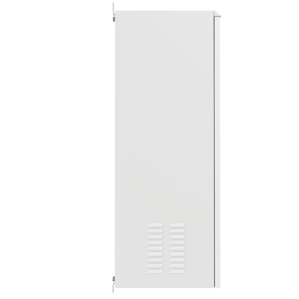 Корпус выполнен из листовой стали и имеет прочную сварную конструкцию, что говорит о высокой степени антивандальности всепогодного шкафа.