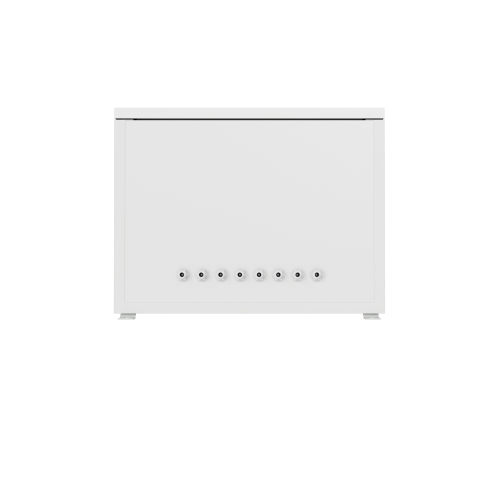 Корпус выполнен из листовой стали и имеет прочную сварную конструкцию, что говорит о высокой степени антивандальности всепогодного шкафа.