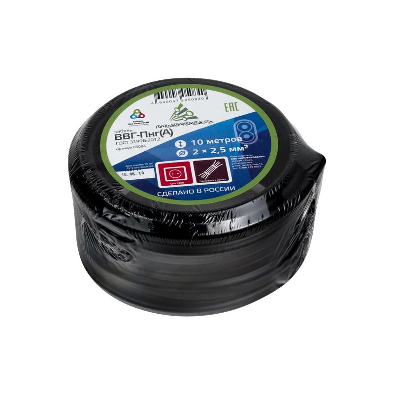 Кабель ВВГ-Пнг(А) 2х2.5 ок (N) 0.66кВ (бухта 10м) (шт) АЛЬФАКАБЕЛЬ 45992