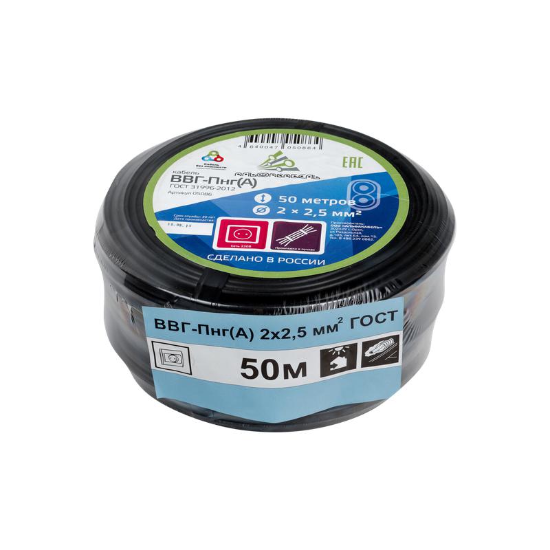 Кабель ВВГ-Пнг(А) 2х2.5 ок (N) 0.66кВ (бухта 50м) (шт) АЛЬФАКАБЕЛЬ 65529