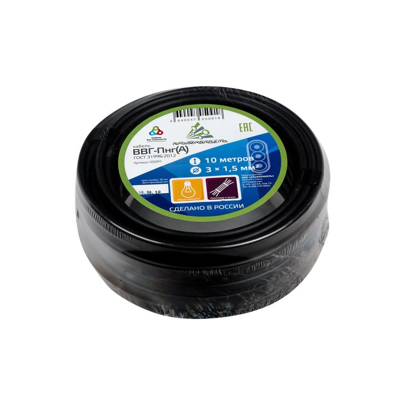 Кабель ВВГ-Пнг(А) 3х1.5 ок (N PE) 0.66кВ (бухта 10м) (шт) АЛЬФАКАБЕЛЬ 45996