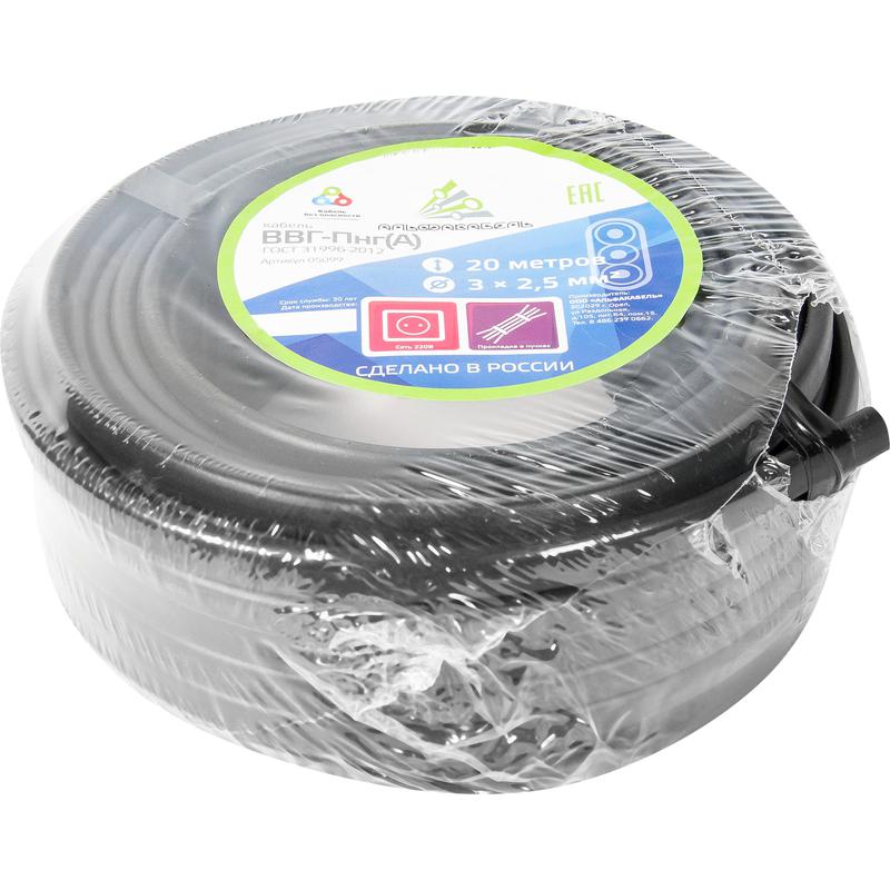Кабель ВВГ-Пнг(А) 3х2.5 ок (N PE) 0.66кВ (бухта 20м) (шт) АЛЬФАКАБЕЛЬ 45989