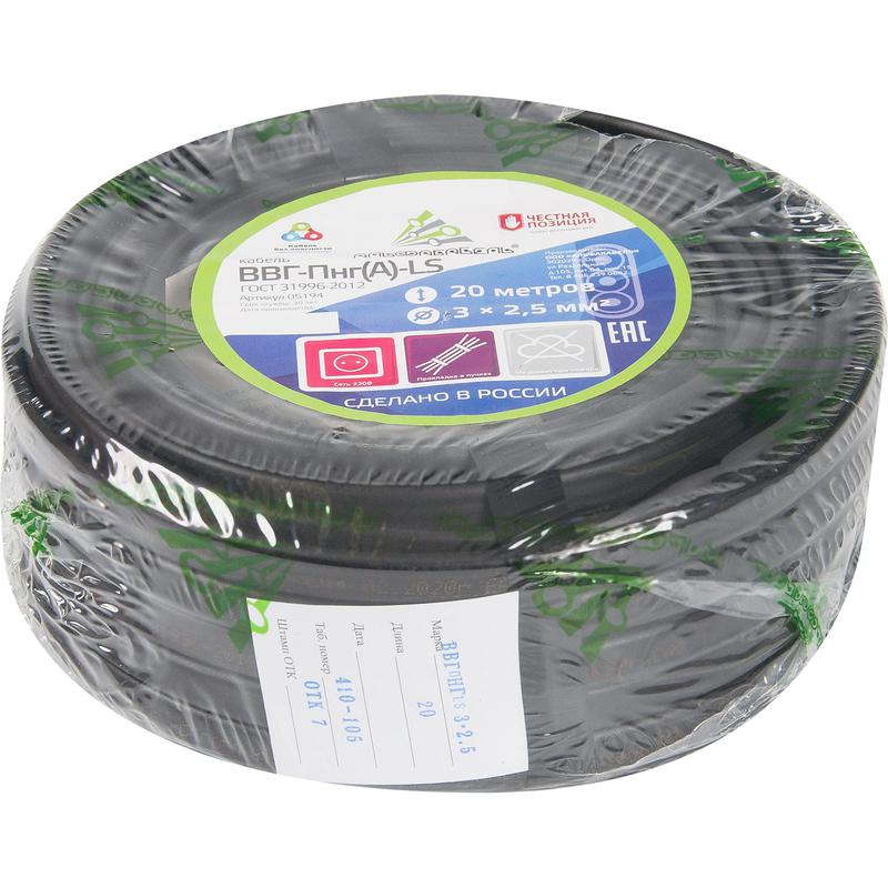 Кабель ВВГ-Пнг-LS(А) 3х2.5 ок (N PE) 0.66кВ (бухта 20м) (шт) АЛЬФАКАБЕЛЬ 65537