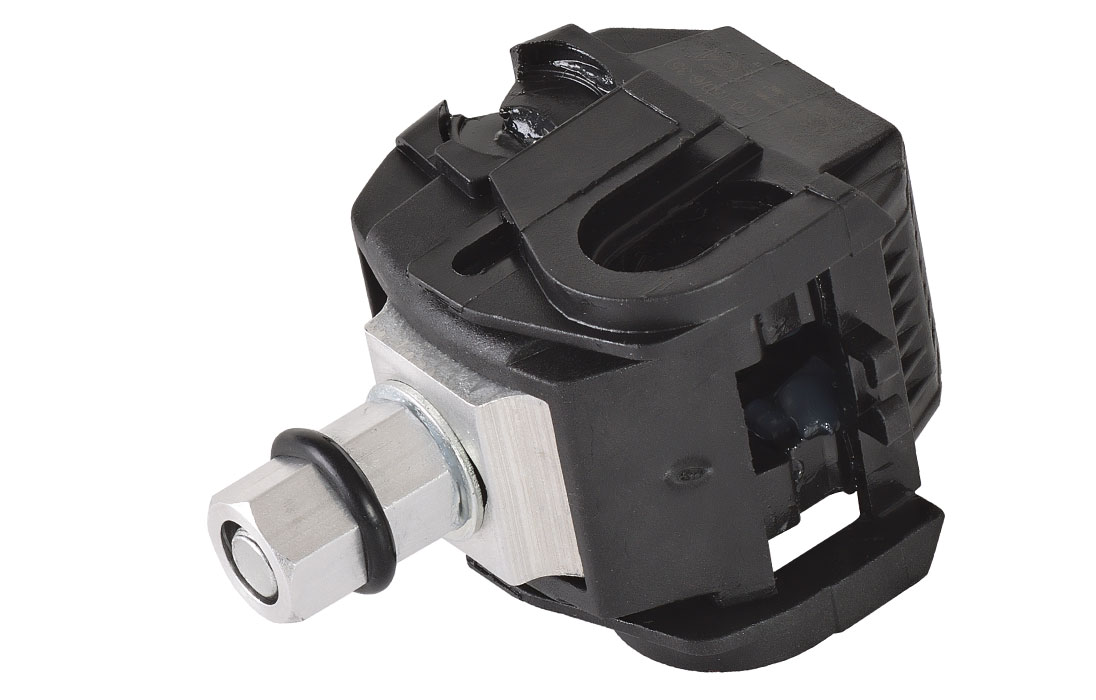 Предназначен для подключения ответвляющихся линий к магистральной. Посредством прокола соединяются два провода без удаления изоляционного слоя. Чтобы предупредить окисление в месте прокола внутри есть специальная смазка, а контакт обеспечивается пластинами с пирамидальными зубьями и калиброванной головкой срывного типа. Зажимы оснащены второй головкой для демонтажа, оставаясь при этом продуктом одноразового монтажа. Посредством их замены можно безопасно соединить провода или необходимые элементы цепи. Качественный зажим для СИП кабеля является гарантией максимально быстрого и безопасного монтажа. Отличительной особенностью продукта является высокое качество материалов изготовления. Сечение соединяемых изолированных проводников 50-150 мм² с 6-35 мм².