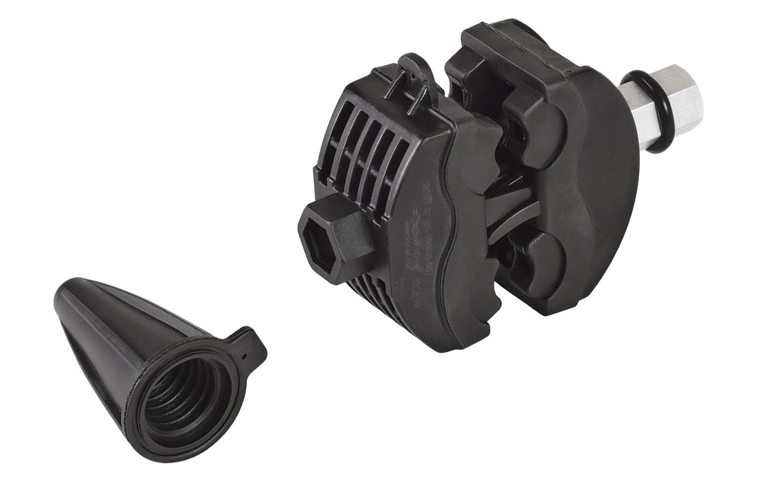 Предназначен для подключения ответвляющихся линий к магистральной. Посредством прокола соединяются два провода без удаления изоляционного слоя. Чтобы предупредить окисление в месте прокола внутри есть специальная смазка, а контакт обеспечивается пластинами с пирамидальными зубьями и калиброванной головкой срывного типа. Зажимы оснащены второй головкой для демонтажа, оставаясь при этом продуктом одноразового монтажа. Посредством их замены можно безопасно соединить провода или необходимые элементы цепи. Качественный зажим для СИП кабеля является гарантией максимально быстрого и безопасного монтажа. Отличительной особенностью продукта является высокое качество материалов изготовления. Сечение соединяемых изолированных проводников 25-150 мм² с 25-95 мм².