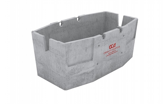 Колодец имеет в сечении восьмиугольную форму и состоит из двух элементов – верхней и нижней половин. На элементах колодца имеются петли для строповки при погрузке и разгрузке их с автомобиля, а также для опускания в котлован. Перекрытие верхнего элемента дополнительно армировано и содержит круглое отверстие диаметром 600 мм для формирования горловины с люком. В основании нижней половины колодца с внутренней стороны расположена прямоугольная ниша. При необходимости, ее стенку вырезают для создания дренажа. На внутренних поверхностях торцевых стенок элементов колодца также имеются армированные ниши. В центре ниш расположены технологические отверстия для ввода двух труб с внутренним диаметром 100 мм. Для ввода и вывода каналов на наружных поверхностях боковых стенок колодца расположены по две ниши, с каждой из сторон. Так как стенки ниш армированы, то для ввода труб в колодец необходимо вырезать отверстия углошлифовальной машиной (болгаркой) или высверливать с помощью коронок.