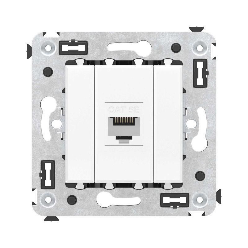 Компьютерная розетка без шторки используется для подключения компьютерной техники и соединения с патч-панелью. Компьютерная розетка предназначена для скрытого монтажа в стену, поставляется в комплекте с суппортом. Розетка RJ-45 категории 5e – это наиболее популярная на сегодняшний день модель. Она позволяет организовать сеть с частотой 125 МГц и скоростью до 1000 Мбит/с. Материал – металл, термопласт. Пластиковые детали устройства имеют оттенок "Белое облако" – это чистый белый оттенок, сочетающийся с любыми цветами палитры "Avanti".
