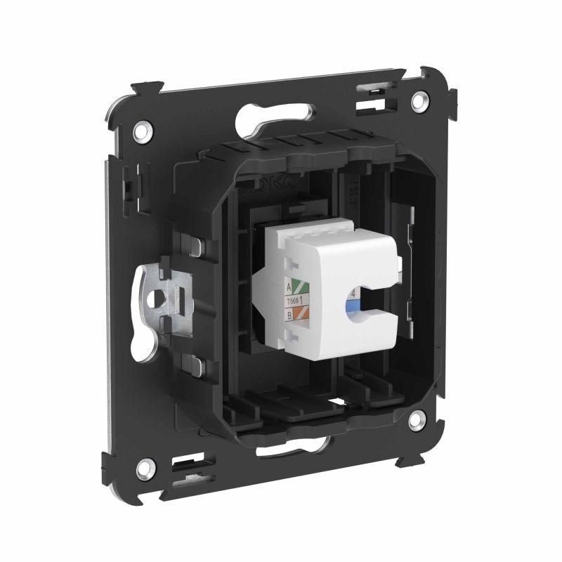 Компьютерная розетка используется для подключения компьютерной техники и соединения с патч-панелью, предназначена для скрытого монтажа в стену, поставляется в комплекте с суппортом. Розетка RJ-45 категории 6 может использоваться для организации сетей с частотой до 250 МГц и передавать данные на большие расстояния. Материал розетки – металл, термопласт. Пластиковые детали изделия выполнены в цвете "Черный матовый"