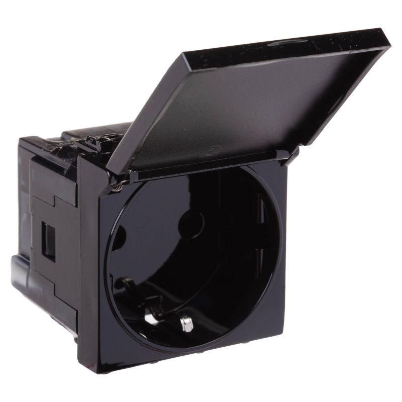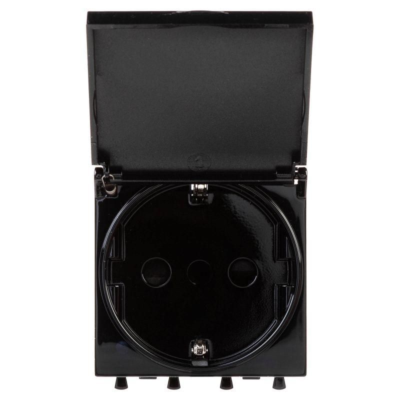 Розетка 1-м 2мод. Avanti "Черный квадрат" 16А IP44 2P+E защ. шторки с крышкой черн. DKC 4402012