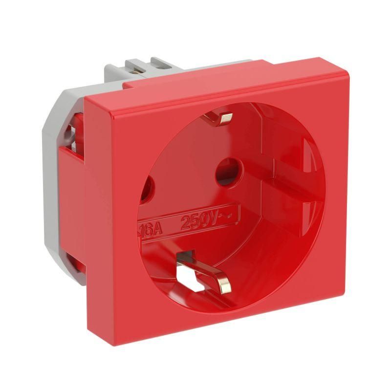 Розетка 1-м 2мод. Viva 16А IP20 2P+E с заземл. защ. шторки красн. DKC 45015